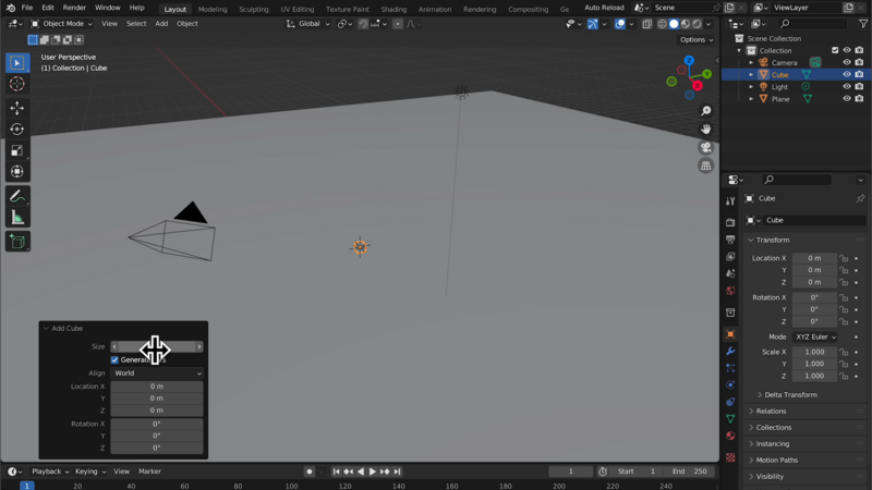 今回は実験台として、50mの平面(Plane)データと0.3mの立方体を用意しました。
