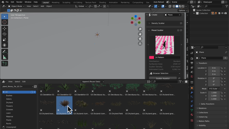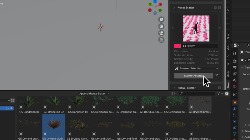 Geo-Scatterはアセットブラウザーとの連携も強いアドオンのようです。