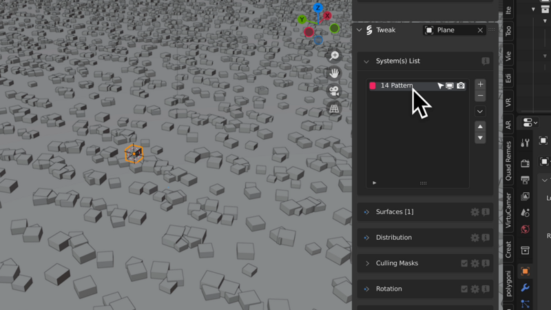 散布したオブジェクトを調整したい時は、Tweakの項目にある機能を使用します。