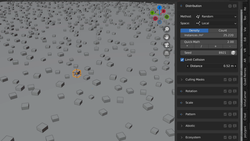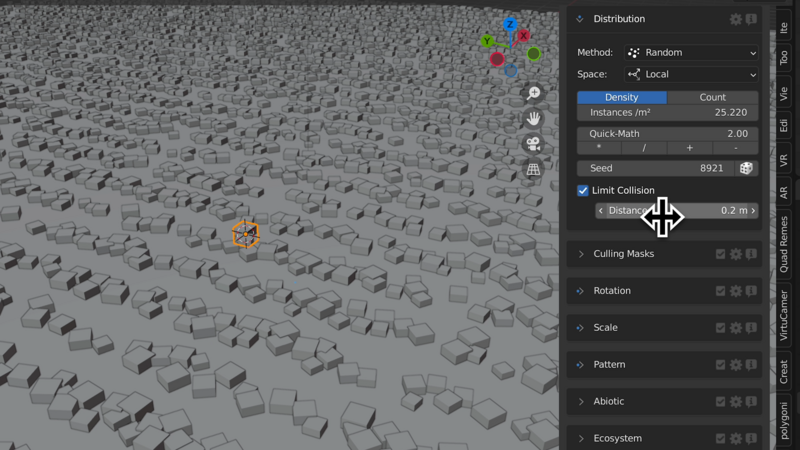 Distributionの中にある、Limit Collisionにチェックを入れて有効化し、値を増やしてみましょう。